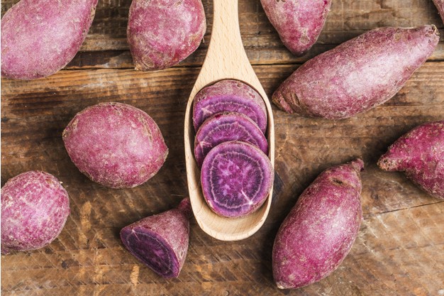 고구마는 베타카로틴이 들어있어 이를 먹으면 인체에서 비타민 A로 바뀌며 강하고 건강한 피부를 유지해 세균이나 바이러스를 일선에서 막을 수 있습니다.