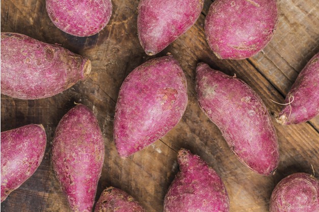 고구마는 베타카로틴이 들어있어 이를 먹으면 인체에서 비타민 A로 바뀌며 강하고 건강한 피부를 유지해 세균이나 바이러스를 일선에서 막을 수 있습니다.