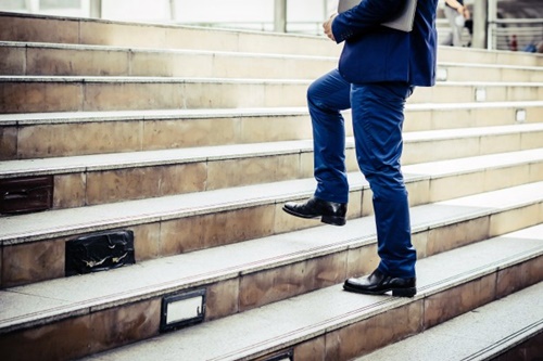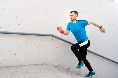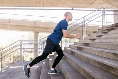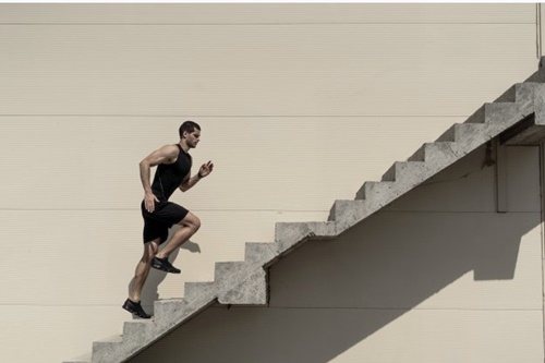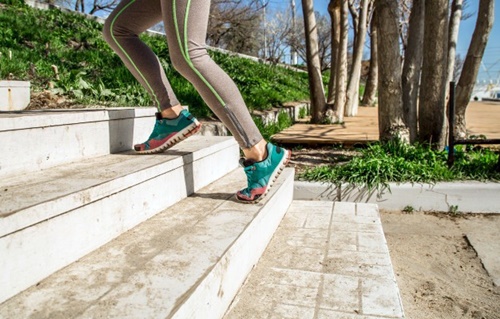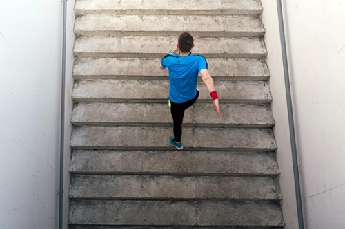 팔은 뒤로 힘차게 힘들고 뒷무릎을 밀어 올려 추진력을 받는 게 좋습니다. 그래야 관절에 무리를 주지 않고 계단을 오를 수 있습니다.